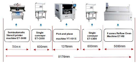 for semi-automatic production line, it includes semi automatic stencil printer, single-rail conveyor, pick and place machine, reflow oven